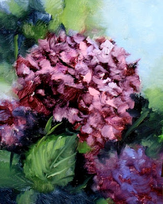Yesterday I drove up to Flower Mound, TX, north of Dallas to visit my friend and artist Nancy Medina at her studio. It was great fun to meet her three pugs and see where she creates her beautiful flower paintings like the one above. We had a wonderful chat over lunch about our mutual love of art, painting, workshops and of course blogging. Nancy was kind enough to treat me to lunch - hopefully I can return that southern hospitality when she comes to Colorado some day soon!
