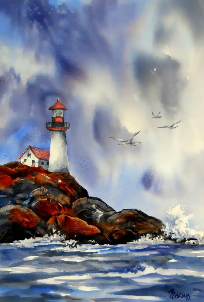 Do you notice the smell of paint, charcoal or other art supplies in your studio? Do you like to light a scented candle while you create? Do you enjoy listening to music or a book on tape? Are you aware of the feel of a brush in your hand, the texture of your paper or the movement of your arm as you paint? Do you enjoy the taste of gum, candy or a healthy snack while you are being creative? Does the subject you are painting bring back memories of the smell of the salt air, the rough feel of the rocks or the sound of the waves hitting the shore?